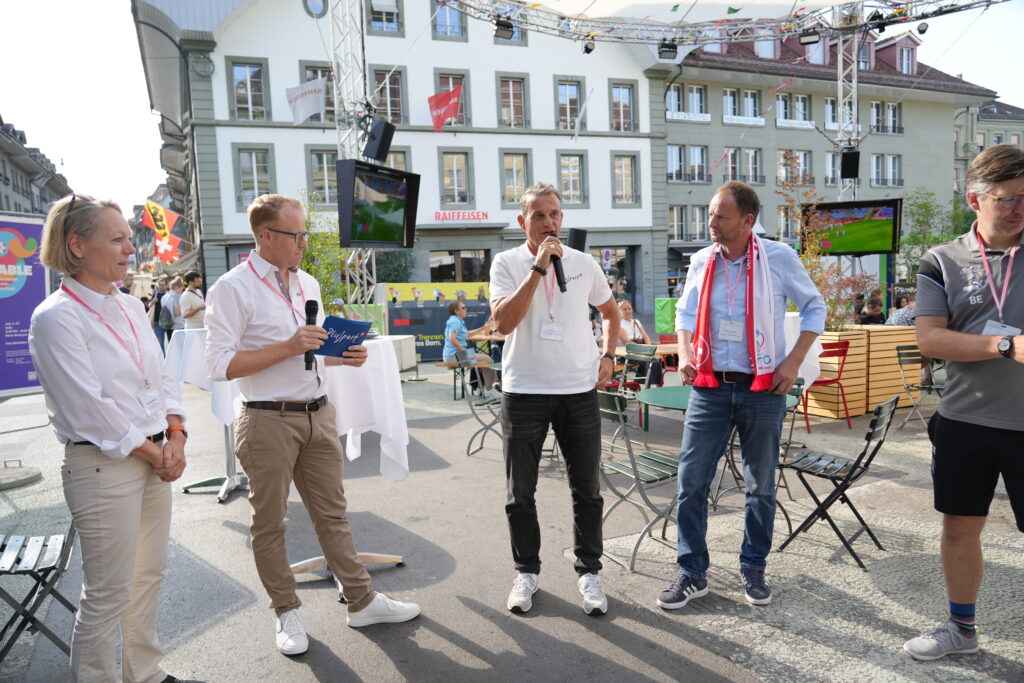 The Women’s Euro fan zone in Bern was not only a place of excitement and emotion but also the perfect venue to celebrate partnership and inclusion. While football fans of all ages and nationalities prepared for the match, representatives from business and sport met over drinks and snacks – united by a shared goal: promoting sport for people with disabilities and strengthening inclusion in sport.